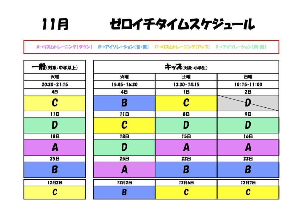 ゼロイチクラスのスケジュールです。必ず4つのクラスを受講してから体験レッスンへ進んでください。